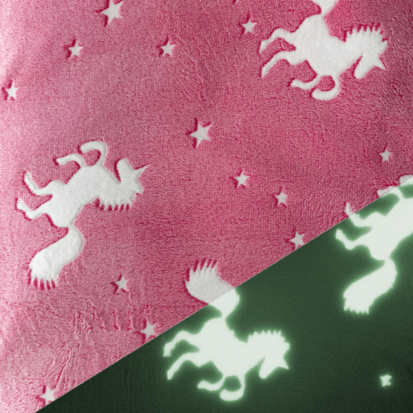 • Svetleći motivi u mraku – magična osobina koja donosi radost deci! Da bi motivi zasijali u tami, dovoljno je da ćebe tokom dana bude izloženo prirodnom ili veštačkom svetlu.